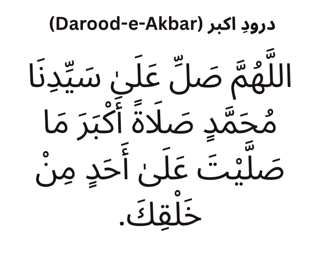 اللَّهُمَّ صَلِّ عَلَىٰ سَيِّدِنَا مُحَمَّدٍ صَلَاةً أَكْبَرَ مَا صَلَّيْتَ عَلَىٰ أَحَدٍ مِنْ خَلْقِكَ.