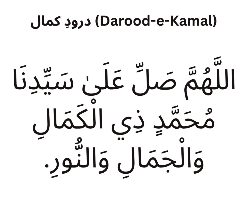 اے اللہ! ہمارے سردار محمد ﷺ پر درود نازل فرما جو کمال، جمال اور نور کے مالک ہیں۔