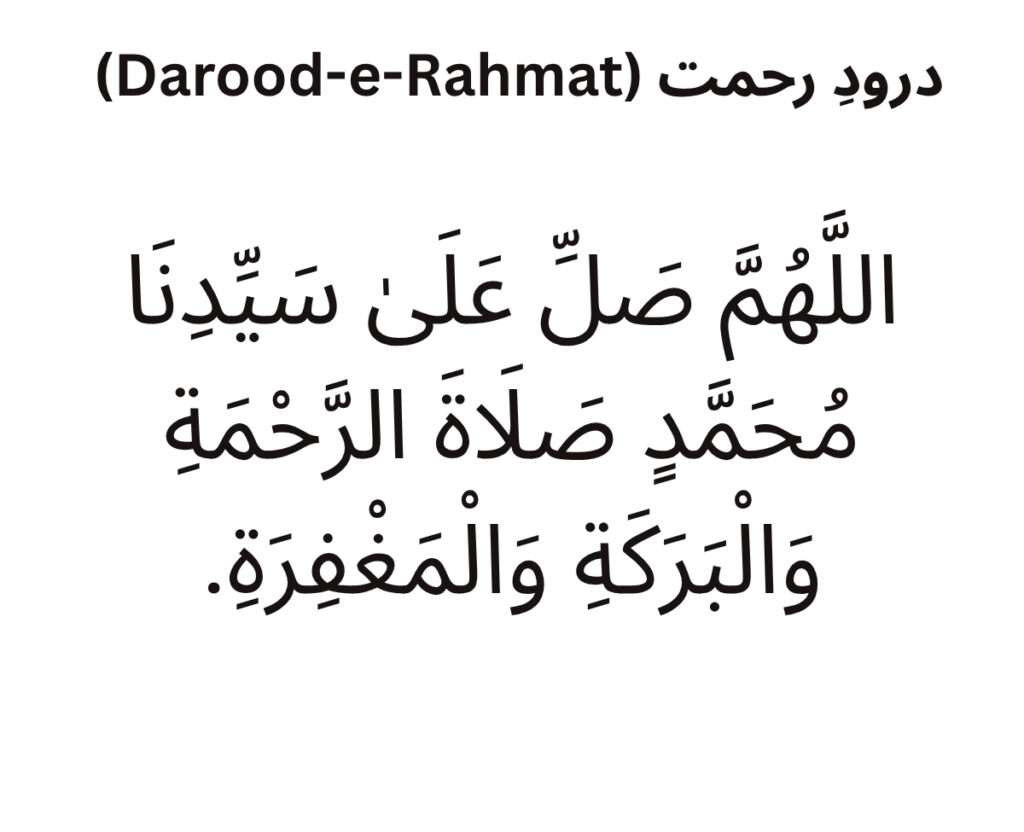 اللَّهُمَّ صَلِّ عَلَىٰ سَيِّدِنَا مُحَمَّدٍ صَلَاةَ الرَّحْمَةِ وَالْبَرَكَةِ وَالْمَغْفِرَةِ.