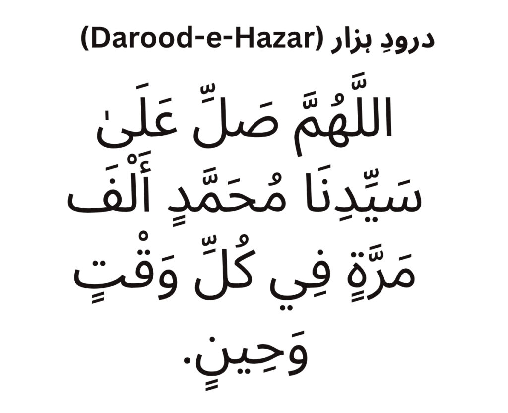 اللَّهُمَّ صَلِّ عَلَىٰ سَيِّدِنَا مُحَمَّدٍ أَلْفَ مَرَّةٍ فِي كُلِّ وَقْتٍ وَحِينٍ.