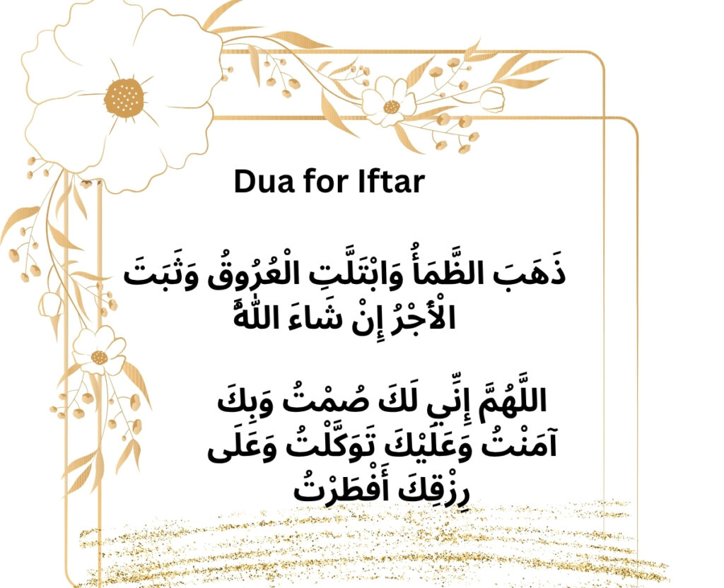 The moment of Iftar is a time of joy and relief. It is recommended to break the fast with a specific dua. This prayer expresses gratitude for the strength to complete the fast.