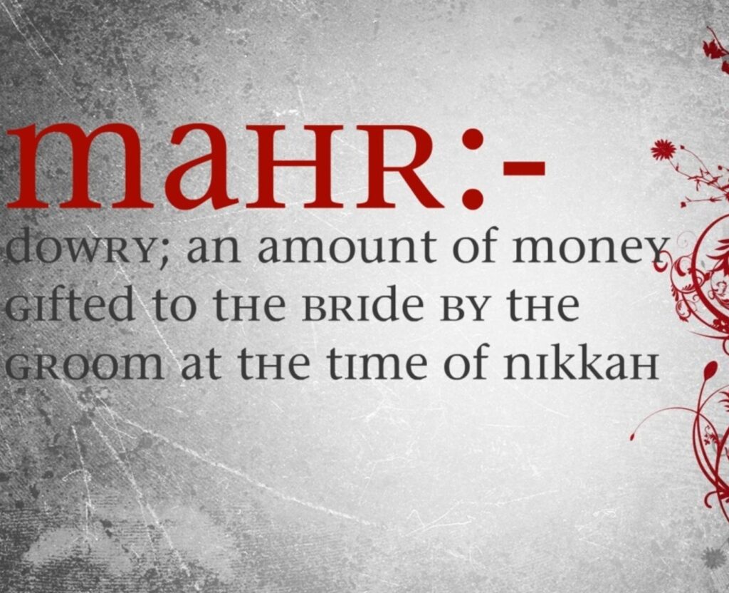 A price entailed by law. It is presented by the groom to the bride. This occurs during the Islamic wedding, which is the Nikah. The marriage contract specifies it. The Mahr can be money. It may also be property, jewelry, or even a non-material gift. Therefore, the type of Mahr is negotiated between the bride and the groom.