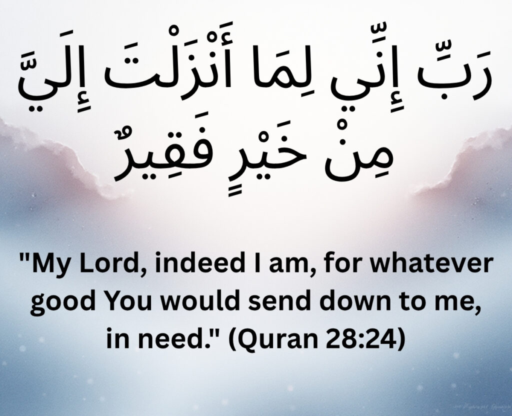 My Lord, indeed I am, for whatever good You would send down to me, in need.” (Quran 28:24)