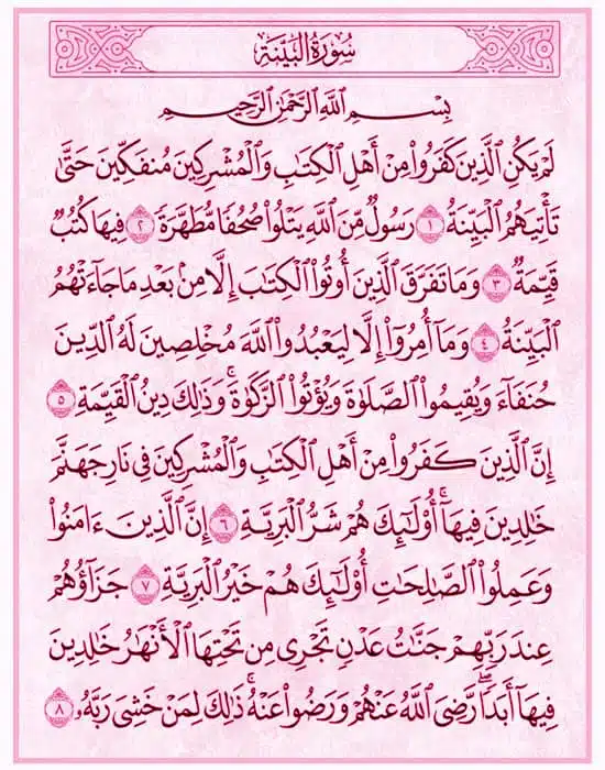 | Name | Surah Al-Bayyinah (The Clear Evidence) |